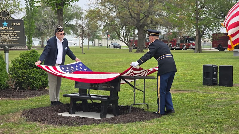 The public watched the unveiling of the bench along with city and state officials, the American Legion and friends and family.